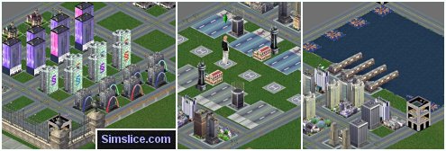 What a city! This uses all Slice City addons to make a lot containing a bustling city, marina, thriving seaport, lively casino district and an air & space port for travelers. Two large unfurnished structures also available to house other essentials for your Sims. Since this occupies Unleashed Lot #70, the Unleashed expansion pack is required.